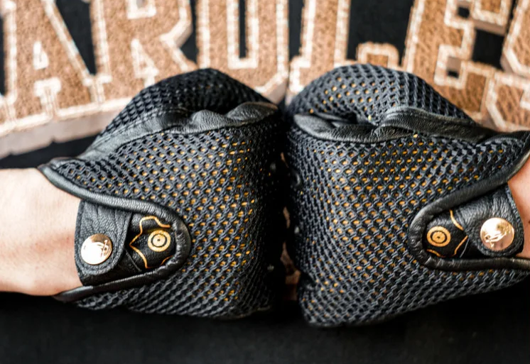 Genuine Leather Perforated • Summer Anti-Slip Palm Ergonomic Cut Adjustable Wrist
